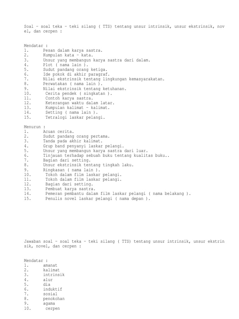 Contoh Soal Cos Dan Jawaban Unsur Instrisik Cerpen - Guru Ilmu Sosial