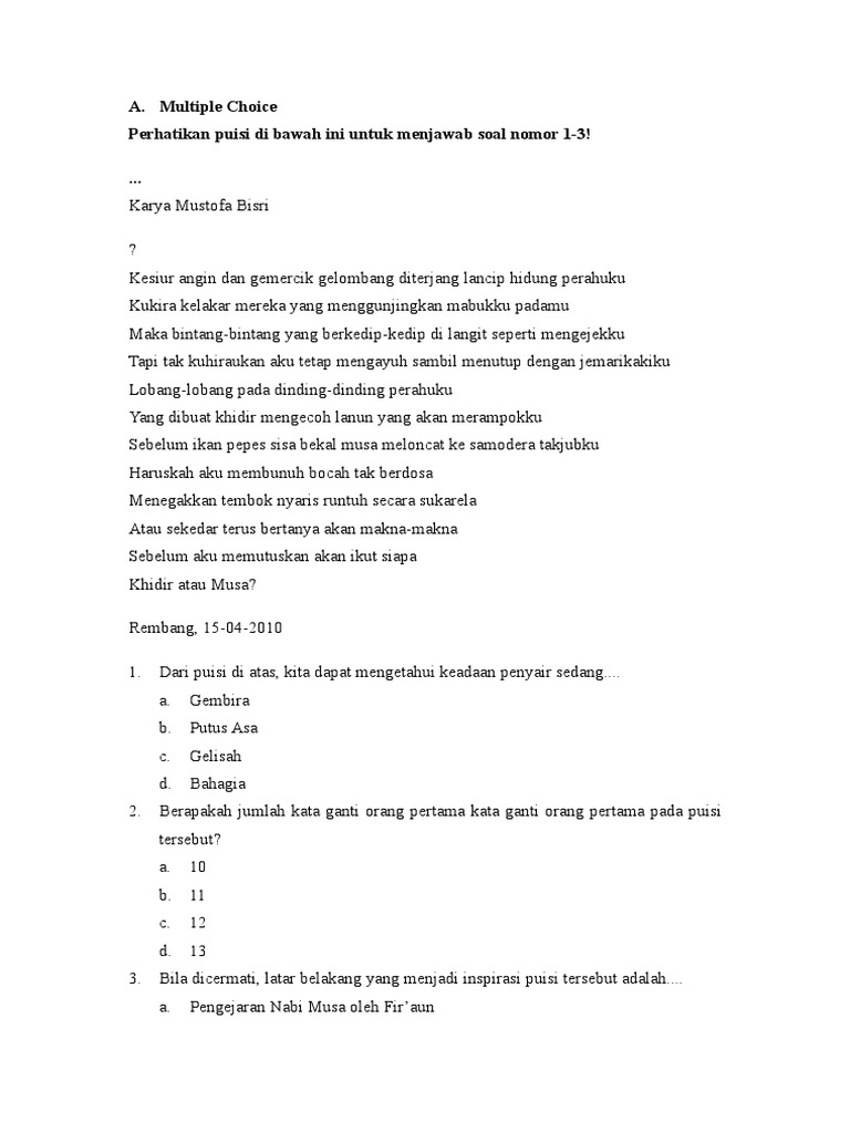 Contoh Soal Puisi Pilihan Ganda Dan Jawabannya Kelas 8 - Kunci Ujian