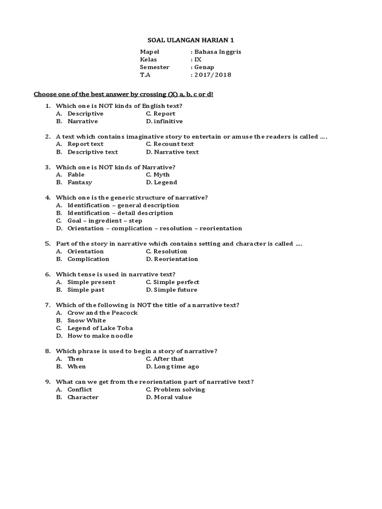 Contoh Soal Essay Narrative Text Smp | Uyhvdd.muadsetas.info
