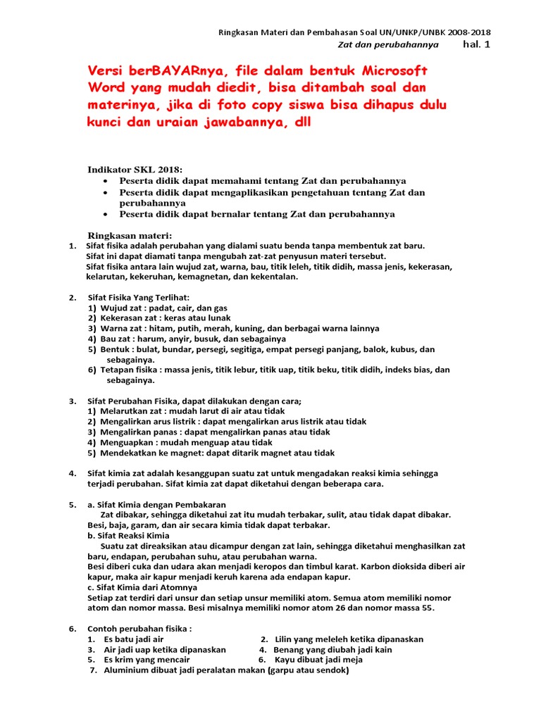 Contoh Soal Zat dan Perubahannya - SMP 1 | idschool