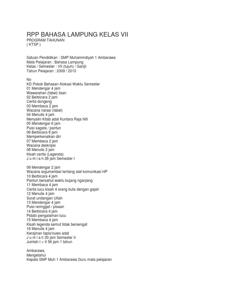 Rpp Bahasa Lampung Kelas Vii