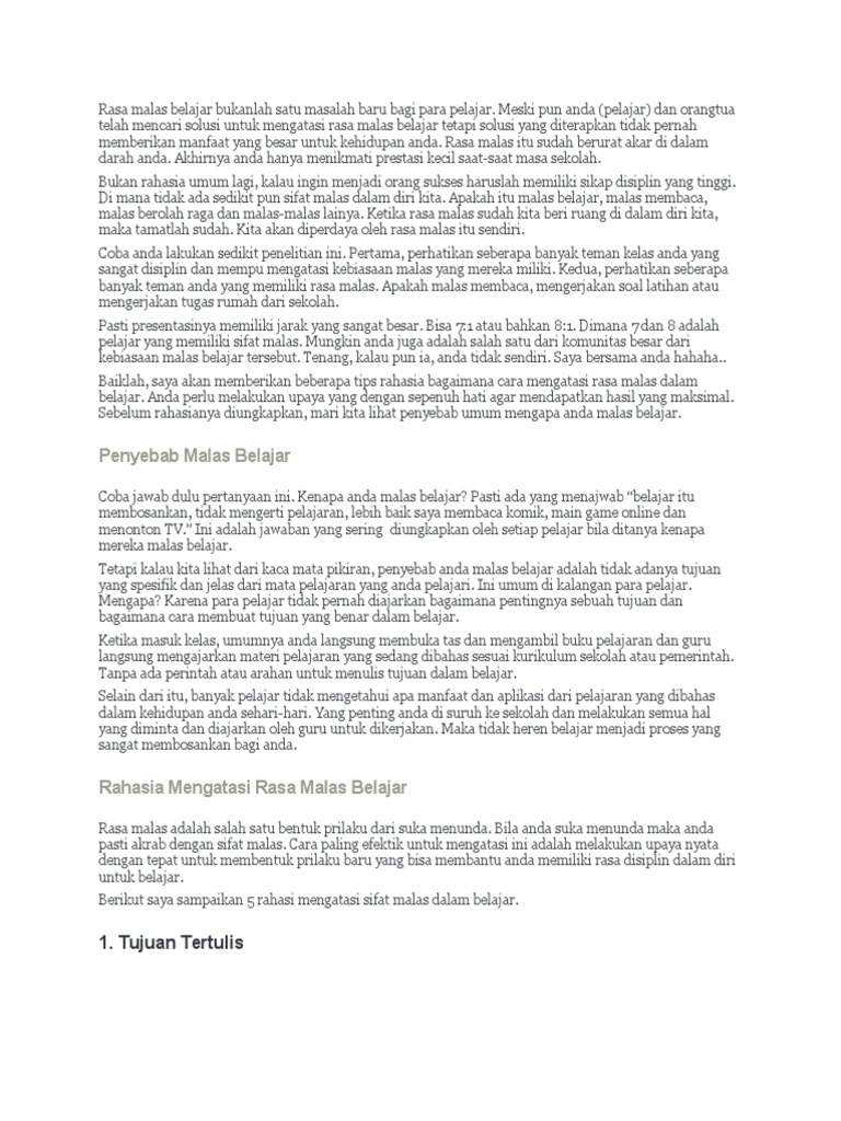 DOC) Cara Mengatasi Rasa Malas Belajar | Arifin Friendsix - Academia.edu