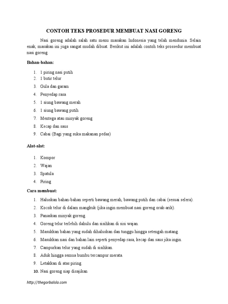 Contoh Teks Prosedur Membuat Nasi Goreng | Blog Pendidikan