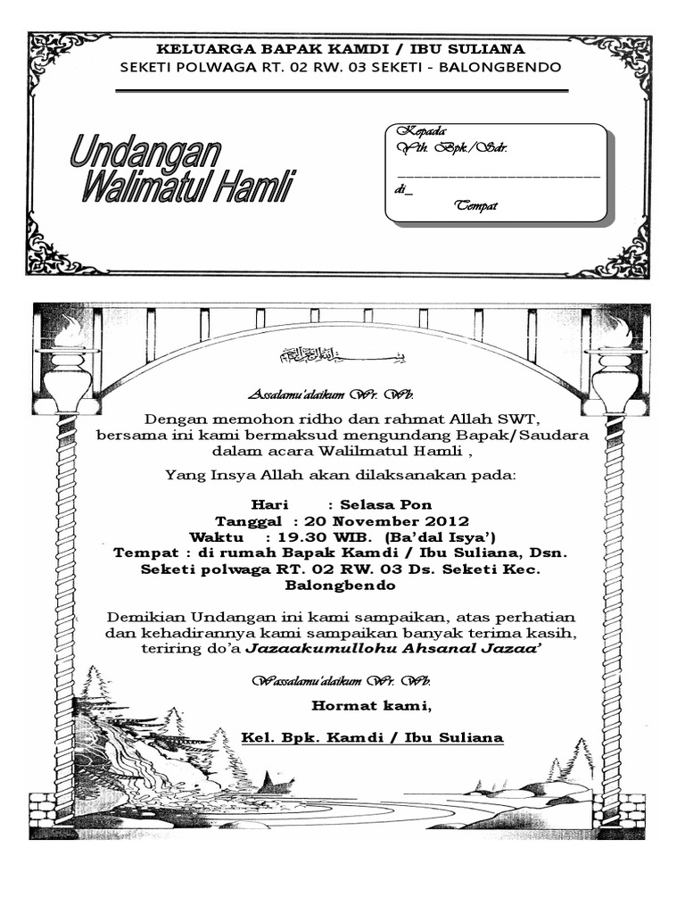 Contoh Undangan Walimatul Hamli Dalam Bentuk Word