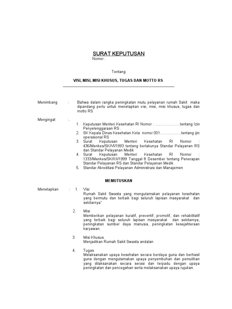 Contoh Sk Visi Misi Klinik Pratama - Guru Ilmu Sosial