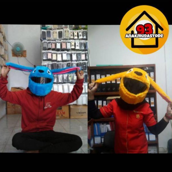 Sarung Cover Helm Bulu Rasfur Karakter Stitch dan elmo Telinga …