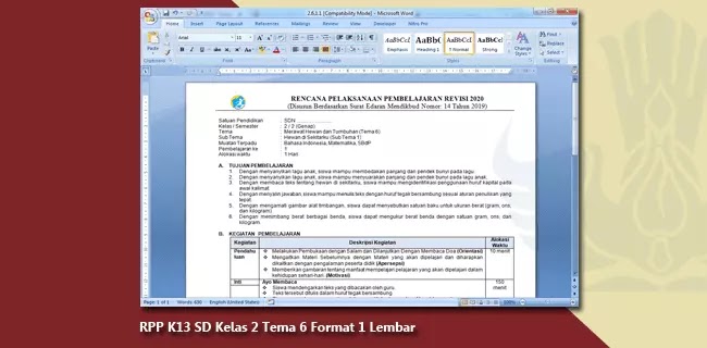 RPP 1 Lembar Kelas 1-6 Revisi 2020 - Kompasiana.com