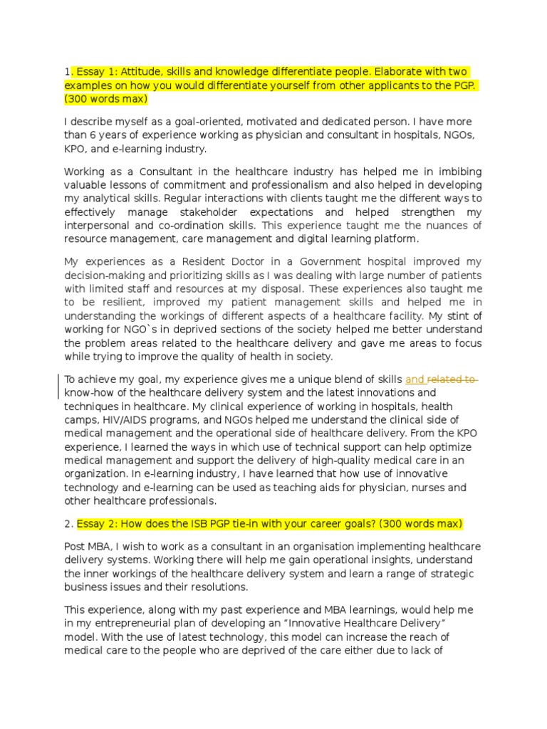 ISB Essays Edited | Health Professional | Health Care