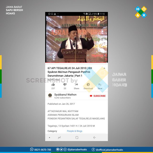 Jabar Saber Hoaks #75TahunJabar on Twitter: “DENGARLAH KRITIKAN TERHADAP PEMERINTAHAN JKW.. [DISINFORMASI] Beredar video pidato KH Syukron Ma’mun yang diedit dan ditambahkan narasi sehingga menimbulkan premis seolah sedang mengkritik pemerintahan …
