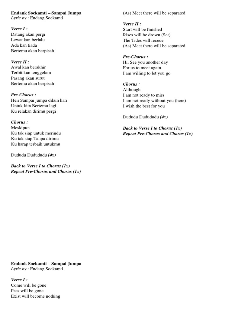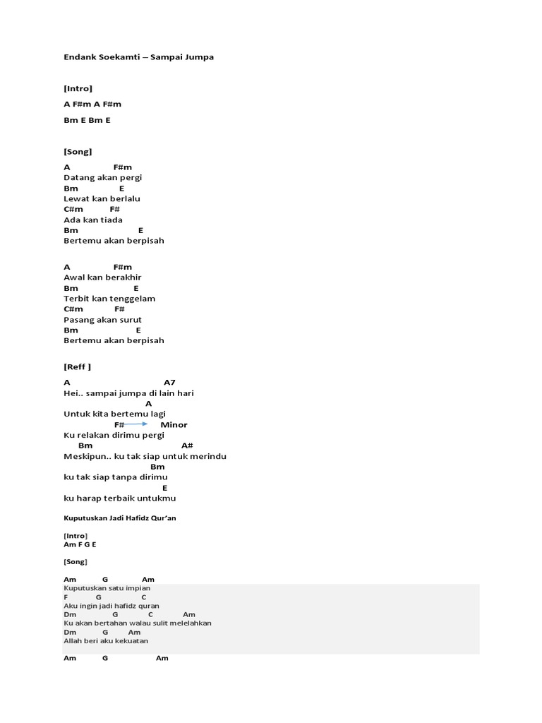 Not angka lagu Endank Soekamti - Sampai Jumpa | Dunia Lirik Not Lagu