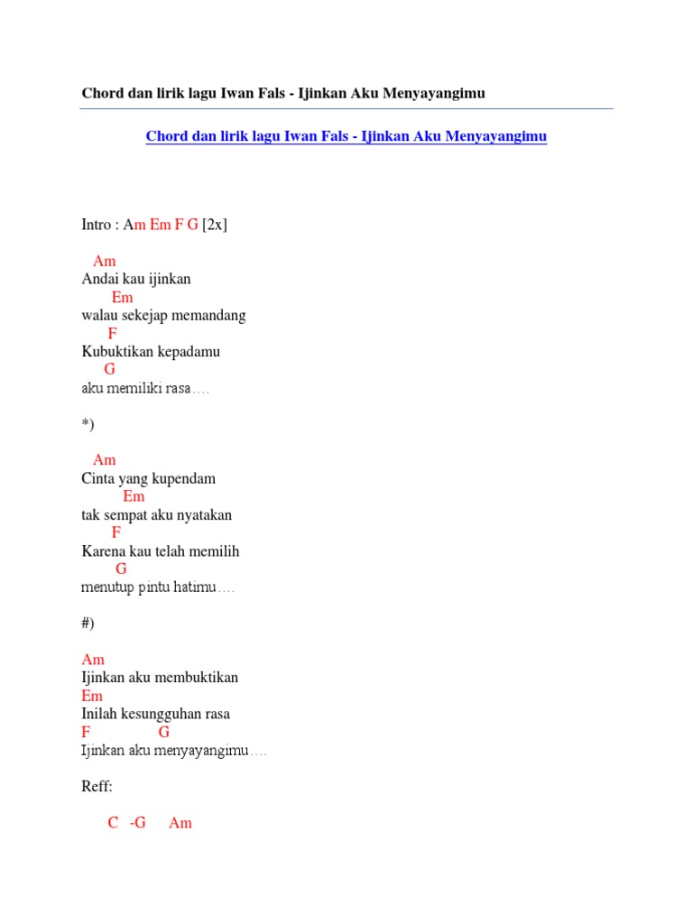 Chord Gitar Iwan Fals Ijinkan Aku Menyayangimu di 2020 | Gitar, Gambar, Lagu