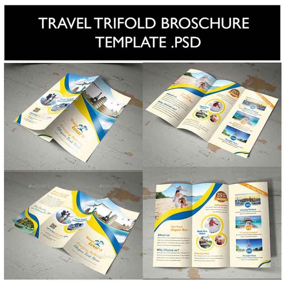 Travel Trifold Broschure Template Free Download - Desain Unduh