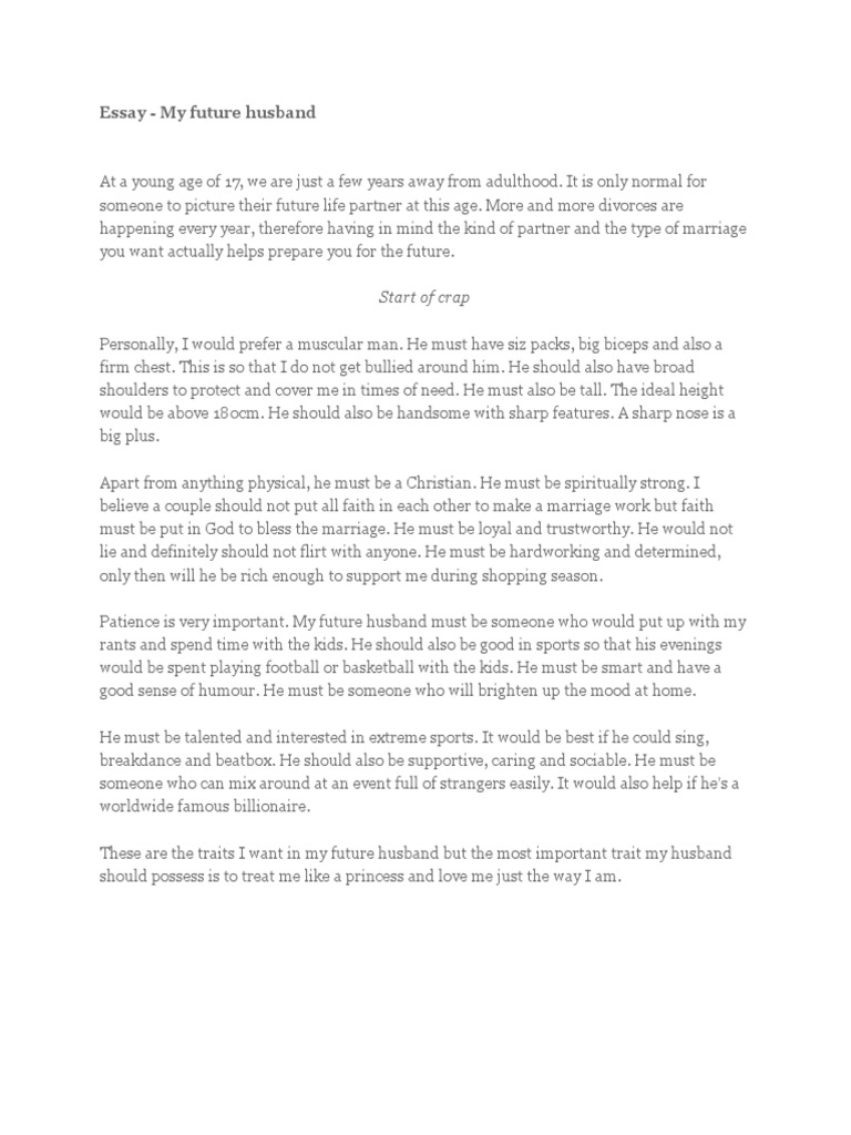 Essay on my future husband | Coursework Sample October 2020 - Writing Service