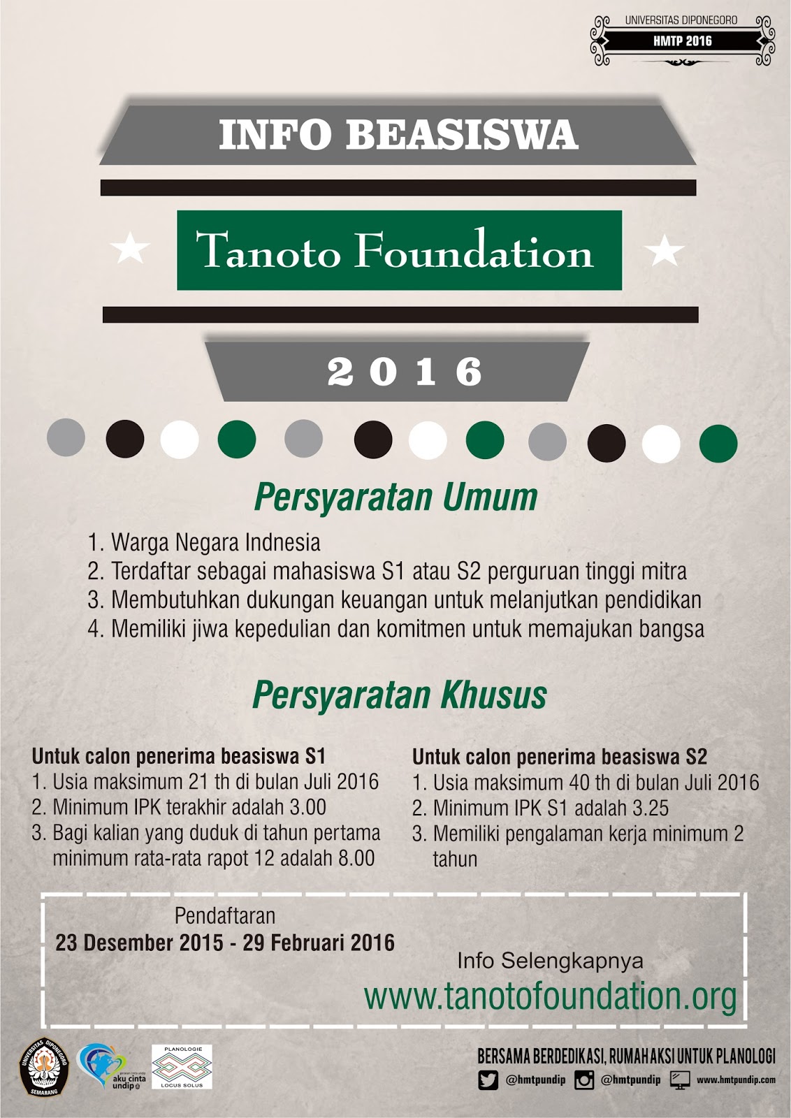 INFO BEASISWA PLANOLOGI: BEASISWA TANOTO FOUNDATION