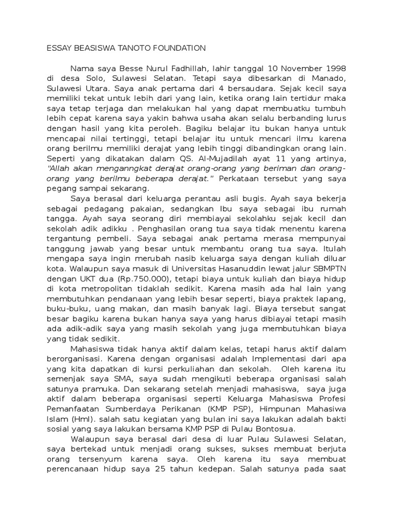Contoh Essai Beasiswa Tanoto Foundation