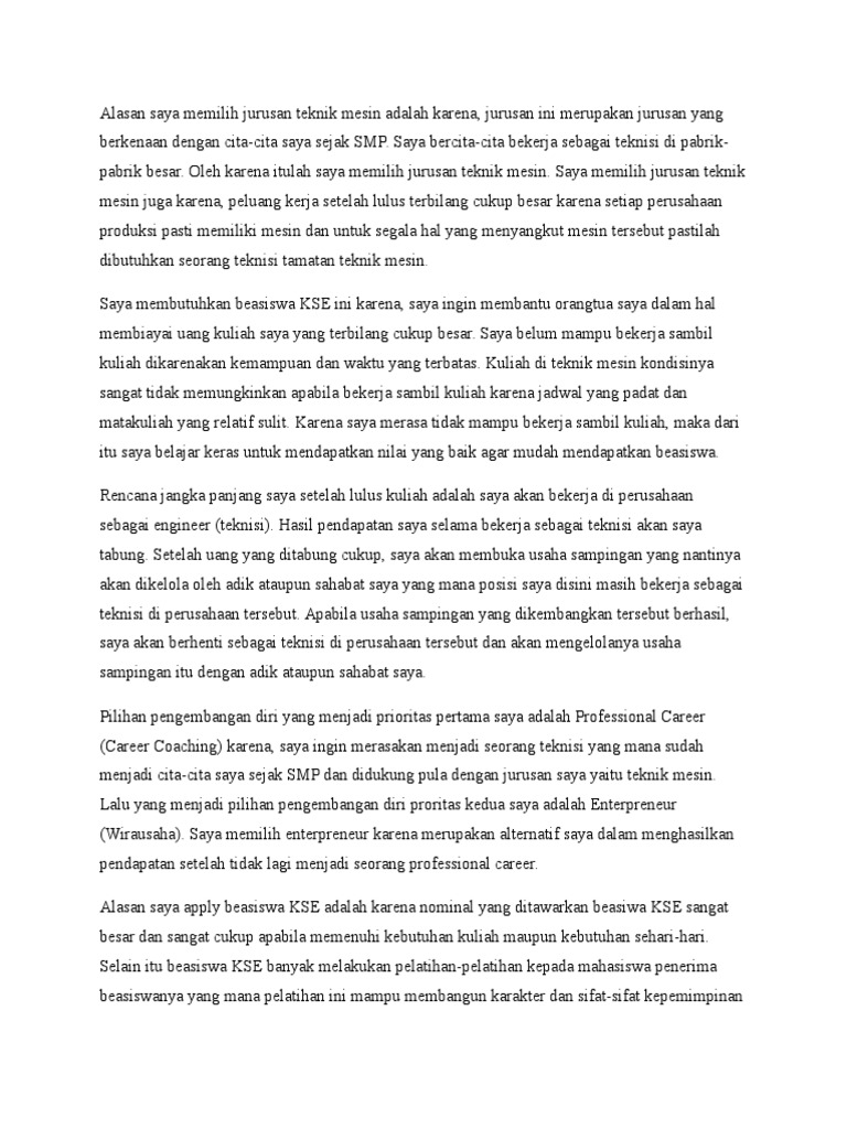 DOC) CONTOH ESSAY MASUK PERGURUAN TINGGI ATAU MELAMAR PESERTA CALON PENERIMA BEASISWA | Muhammad fauzi ozi - Academia.edu