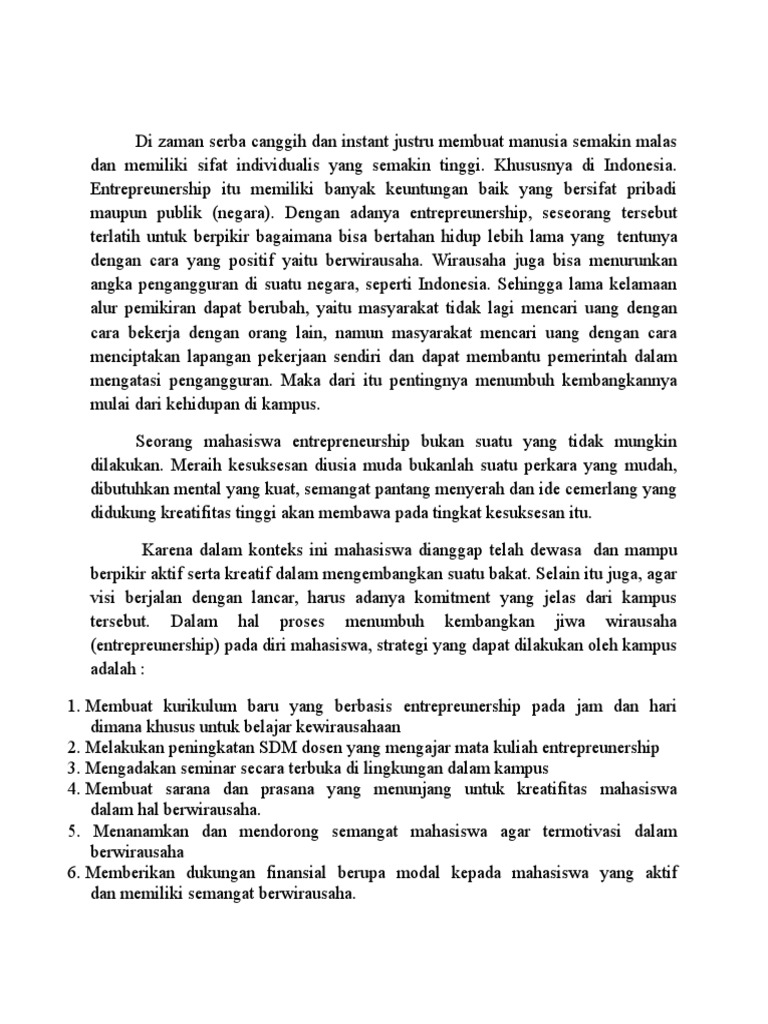 Essay Tentang Menumbuhkembangkan Jiwa Entrepreneurship Mulai Dari …