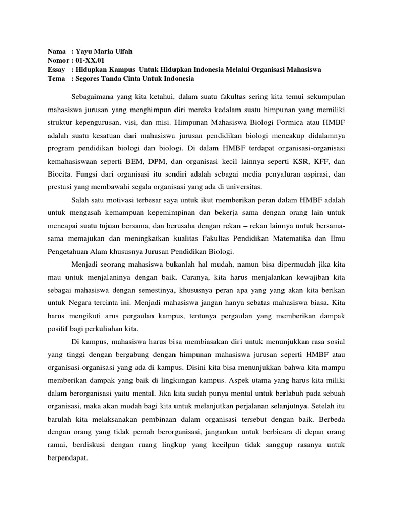 Contoh Essay Organisasi Mahasiswa - Surat AA