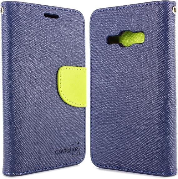 Amazon.com: Samsung Galaxy J1 Ace Case, CoverON [Carryall Series] Flip Folio Card Slot Pouch Cover + Strap + Stand Wallet Case for Samsung Galaxy J1 Ace - Navy Blue & Neon Green