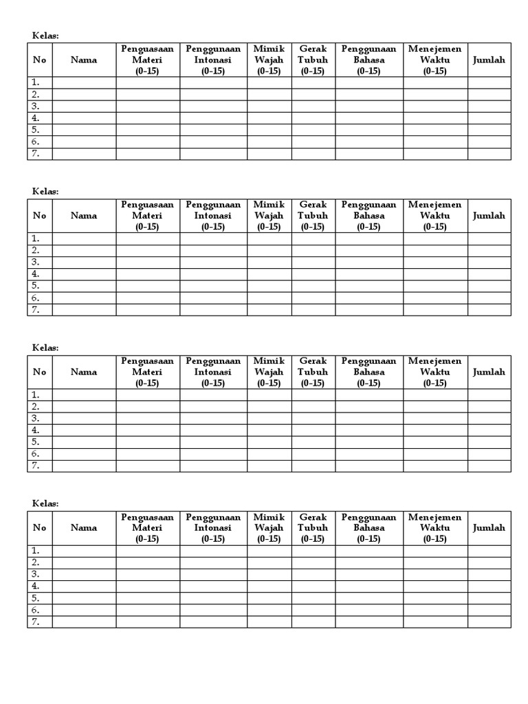Contoh Lembar Blangko Nilai Ujian Praktek Pidato