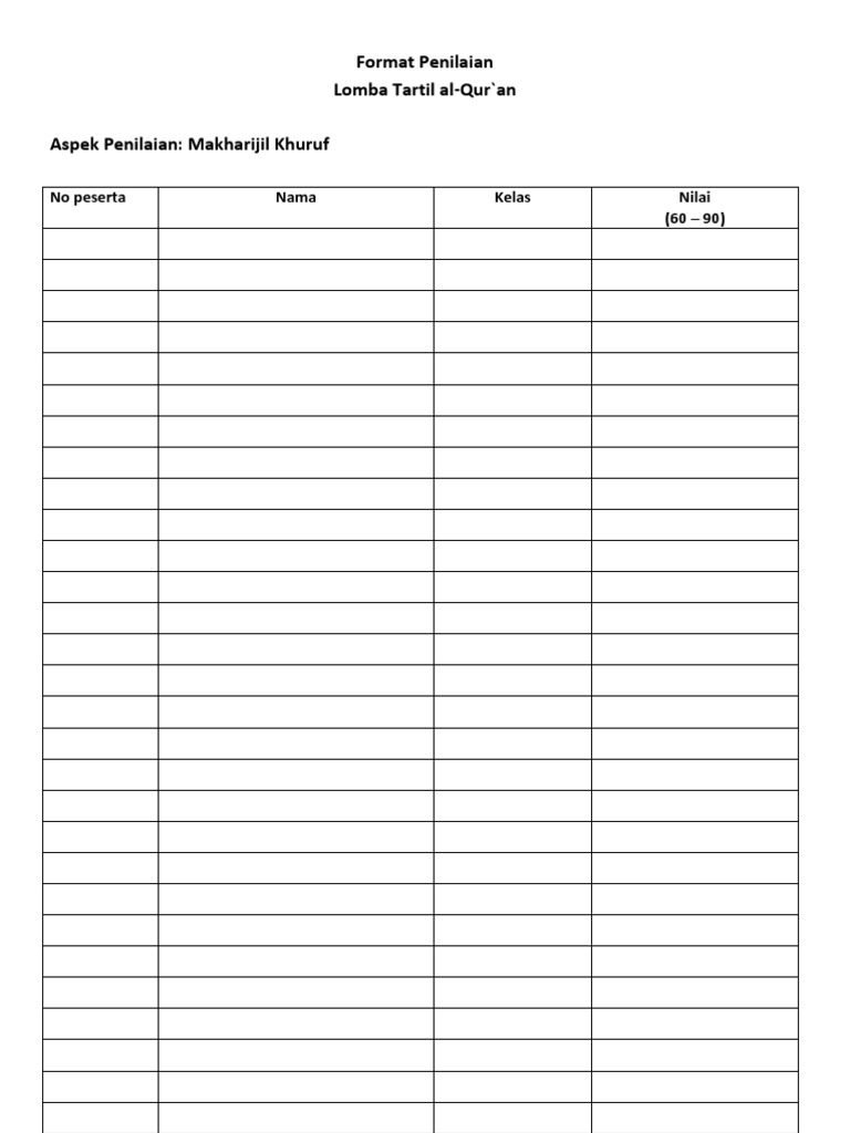Format Penilaian Lomba Tilawah Contoh Blangko Nilai