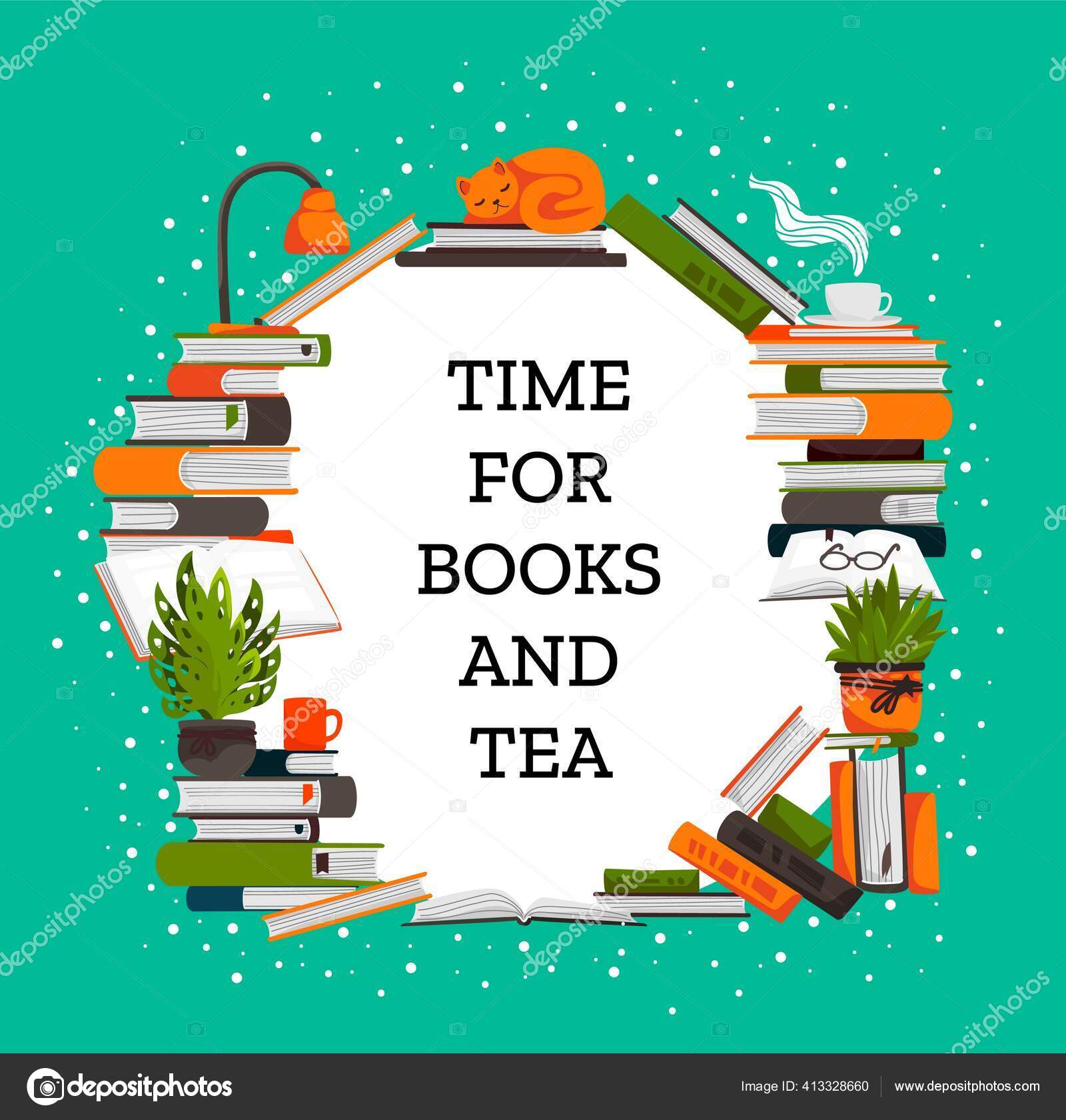 Poster buku. Membaca dan belajar konsep dengan tumpukan kartun dan …