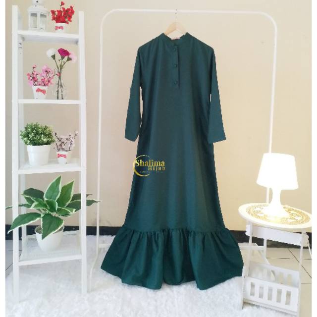Gamis katun toyobo premium hijau botol | Shopee Indonesia