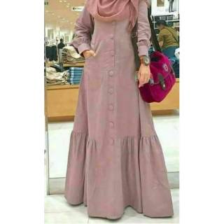 Gamis katun ima Toyobo WL katun jepang original polos maxidress dress syari gamis kancing serut | Shopee Indonesia