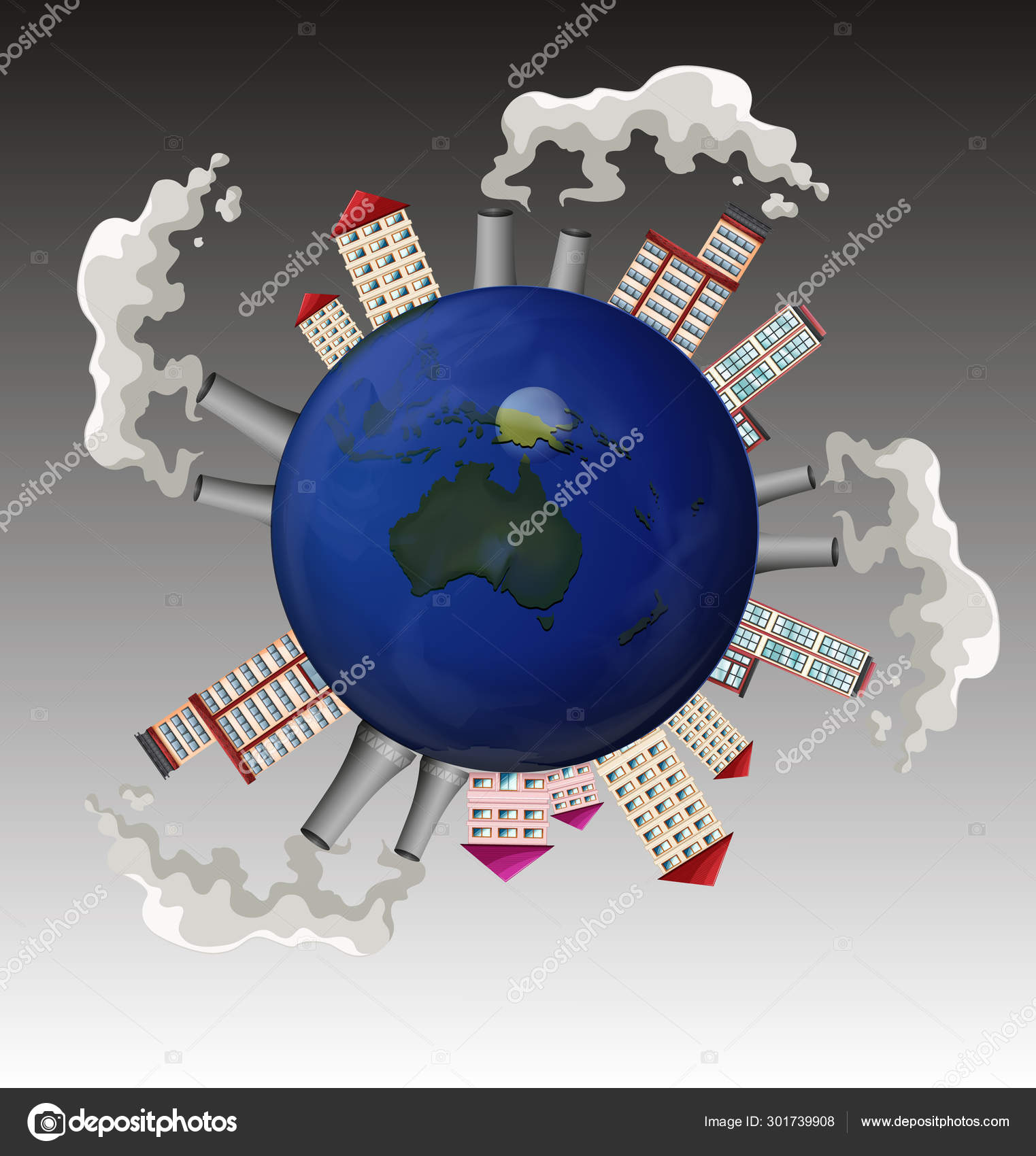 Global warming poster with factories on earth illustration Stock Vector Image & Art - Alamy