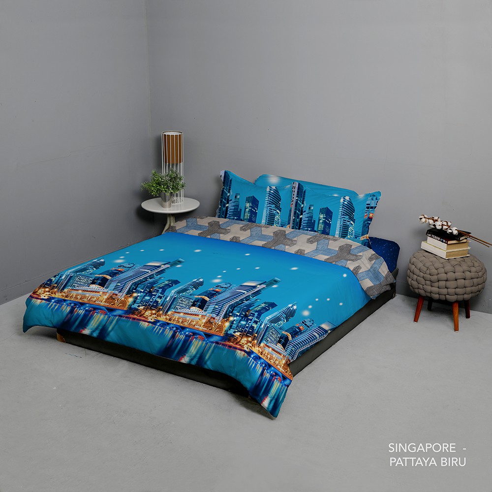 King Rabbit Bed Cover Motif Singapore Biru | Shopee Indonesia