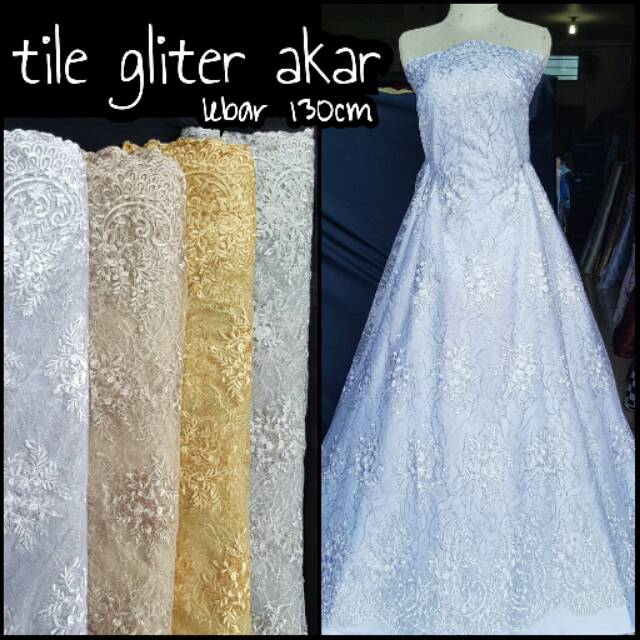 Jual Kain tile bordir glitter fuji / tile jaring / bahan kebaya …