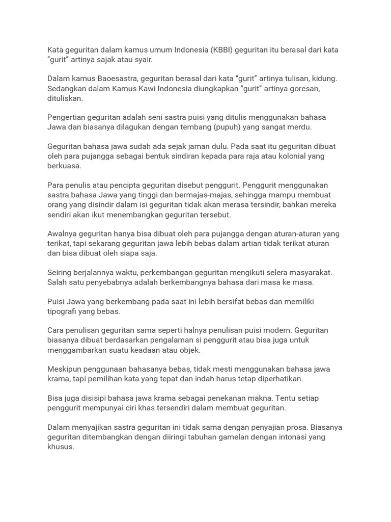 Geguritan Bahasa Jawa, Pengertian, Ciri-Ciri, Jenis, dan Contohnya - Seni Budayaku