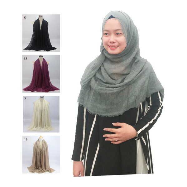 INDOLAND - Hijab Fashion Wanita Jilbab Kain Katun Cotton Baru Crinkle Pashmina Kerudung Rajut Batam | Shopee Indonesia