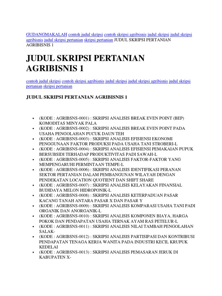 GUDANGMAKALAH Contoh Judul Skripsi Contoh Skripsi Agribisnis Judul Skripsi Judul Skripsi Agribisnis Judul Skripsi Pertanian Skripsi Pertanian JUDUL SKRIPSI PERTANIAN AGRIBISNIS 1