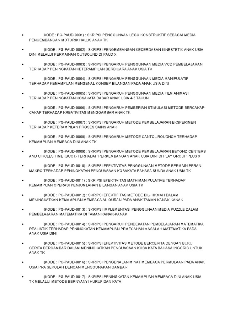 Judul Skripsi Paud - Ide Judul Skripsi Universitas