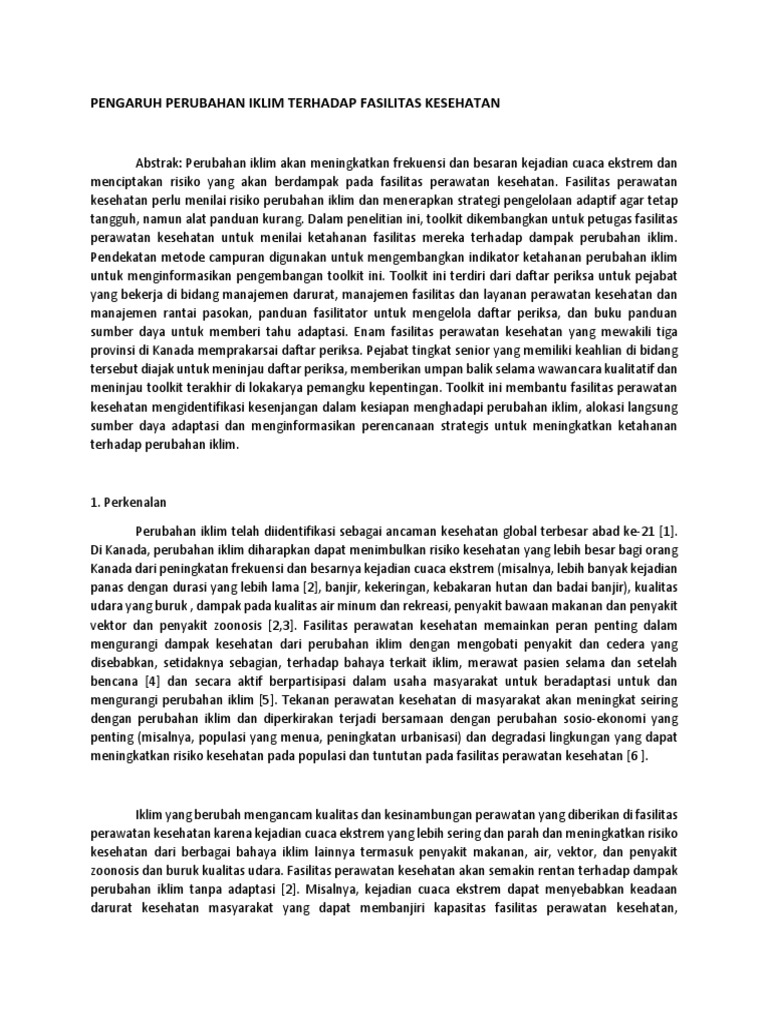 Translate Jurnal Pengaruh Perubahan Iklim Terhadap Fasilitas Kesehatan