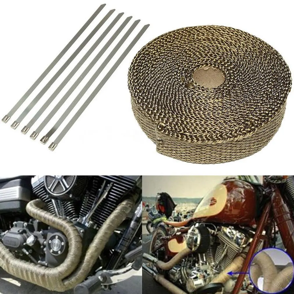 SI AT24002 2.54 Cm X 1.60 Mm X 7.5 M Titanium Gold Pipa Knalpot Isolasi Termal Kain Anti Panas Turbin band|Gantungan, klem & Flensa| - AliExpress