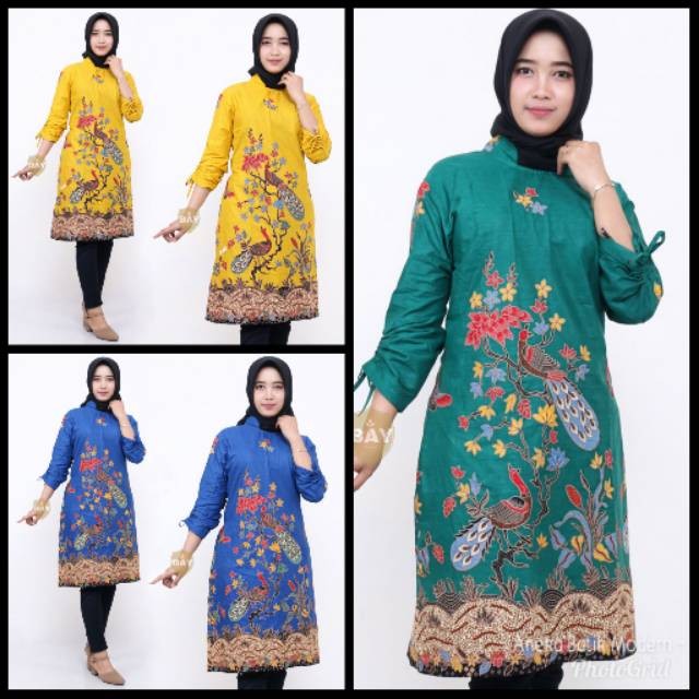 Jual DRESS TUNIK BATIK FORMAL CASUAL MOTIF BURUNG MERAK WARNA …