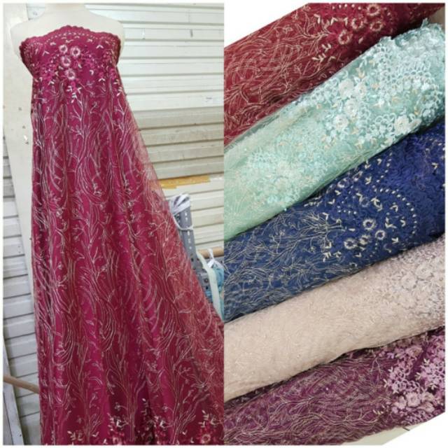 Kain tile bordir. Tulle bordir korea. Kain brokat tile. Kain brukat. Tille bordir. Bahan kebaya | Shopee Indonesia