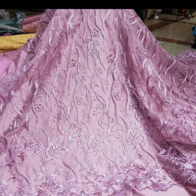 Kain Tile bordir. Tulle akar. Kain brokat bordir. Bahan brukat bordir import. burkat borkat broklat | Shopee Indonesia