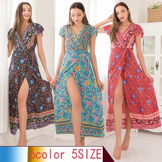 Women’s dress Short sleeve v-neck kain batik Long skir sexy Floral beach dress | Shopee Malaysia