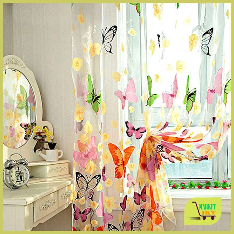 GORDEN MOTIF BUNGA TRANSPARAN TIRAI KAIN PUAL GORDEN JENDELA GORDEN PINTU | Shopee Indonesia