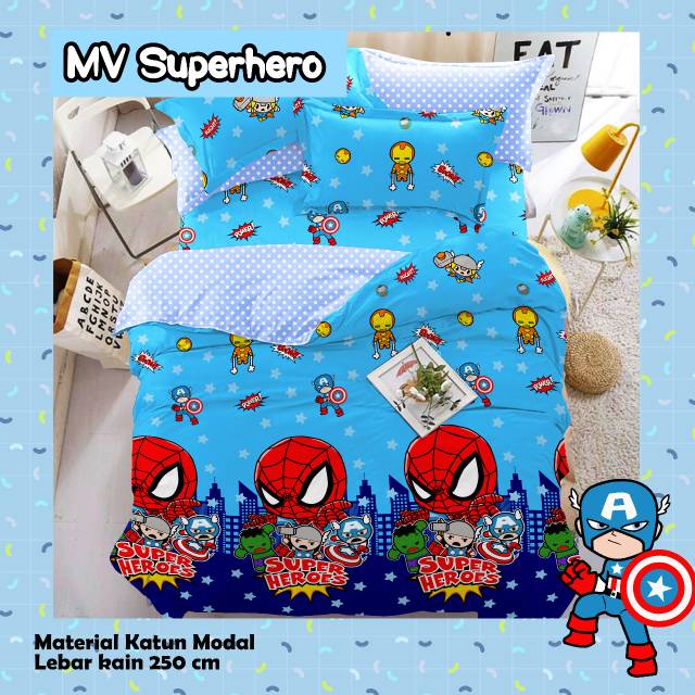Bahan Kain Katun CVC Motif " MV SUPERHERO” | Shopee Indonesia