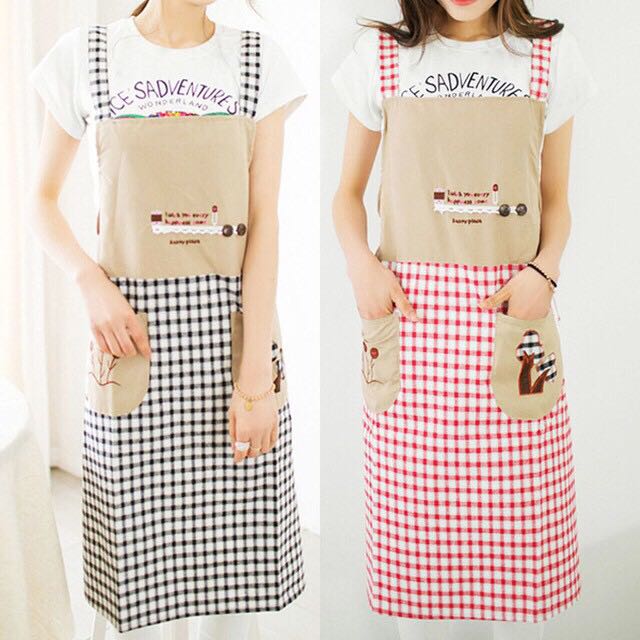 Celemek Masak Kain Katun Apron Korea, Kitchen & Appliances di Carousell