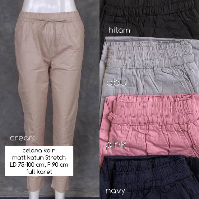 Celana Panjang Wanita Basic Pants Katun Stretch Tali Pinggang Karet Bahan Melar Tidak Kaku | Shopee Indonesia