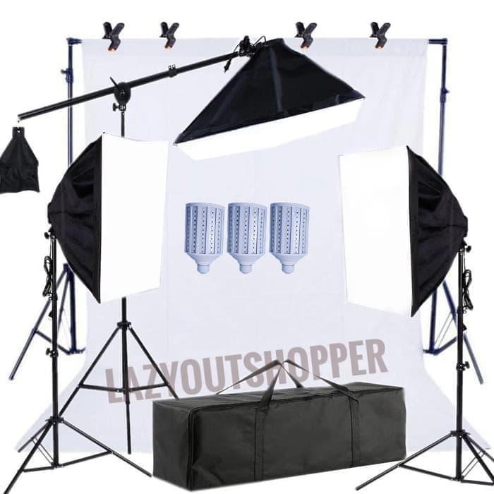 13Akm0)- Paket lighting studio softbox stand kain background dengan lampu led | Shopee Indonesia