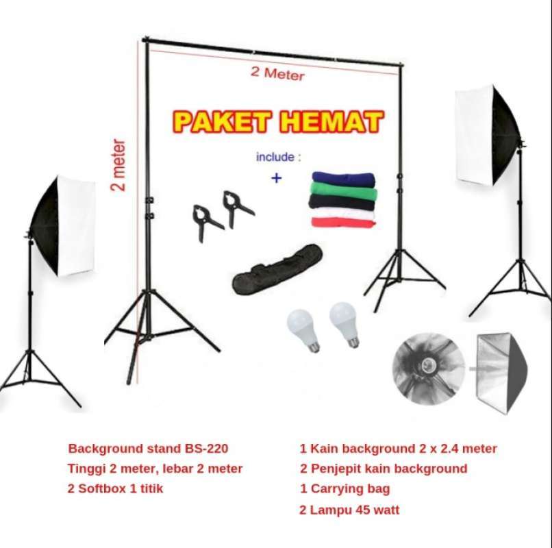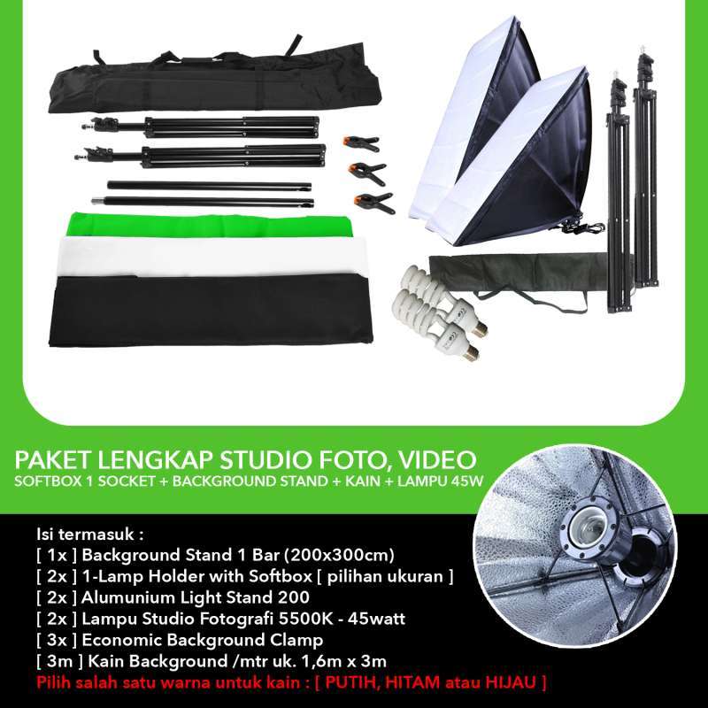 PAKET LENGKAP Studio Foto Video Softbox 1 Socket Lampu [ E27 ]+ Background Stand + Kain + Lampu 45W | Shopee Indonesia