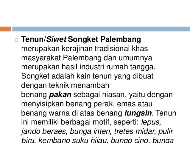 Mengenal Kain Khas Sumatera Selatan - Ditjen Kebudayaan