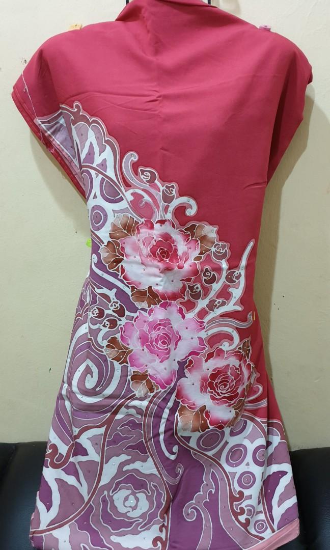 July100 Cotton Viscose Batik Hand Painting exclusive (kain pasang batik Canting) Diamond (4.0m) + Free cotton diamond Scarf (women’s hijab), Women’s Fashion, Clothes, Dresses on Carousell