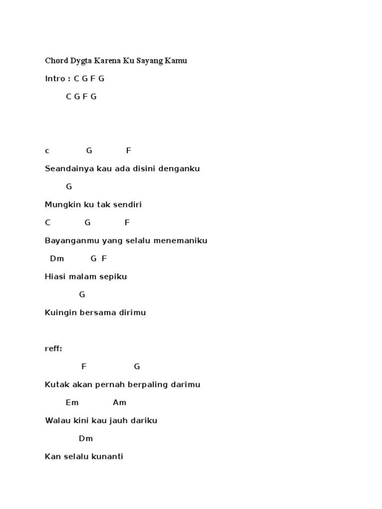 Chord Dygta Karena Ku Sayang Kamu